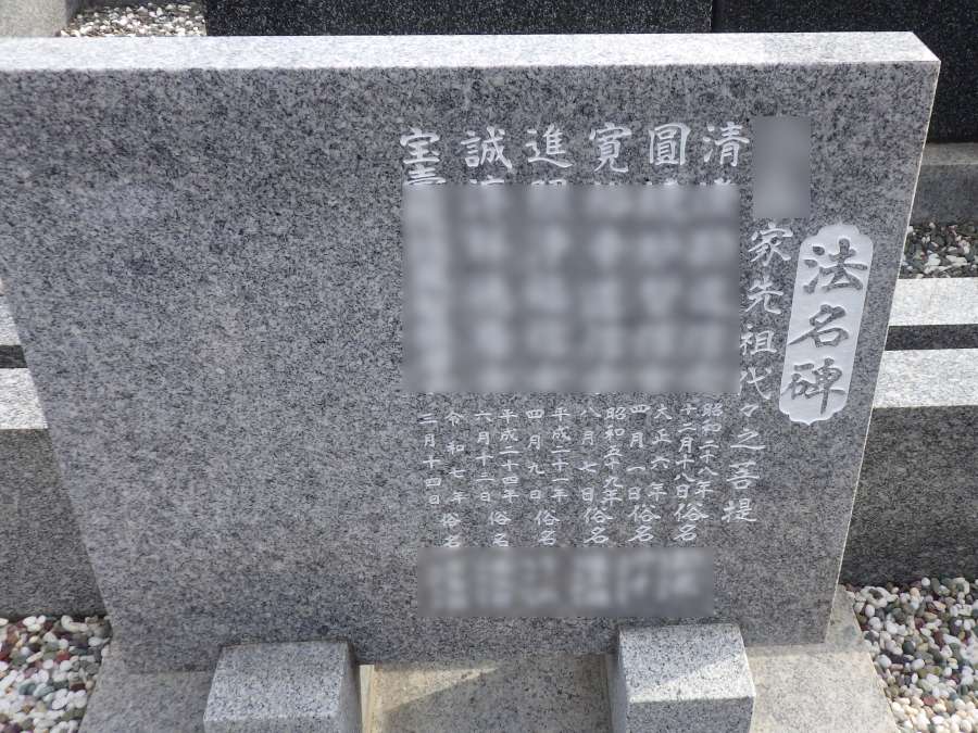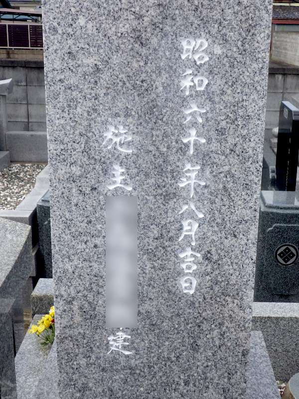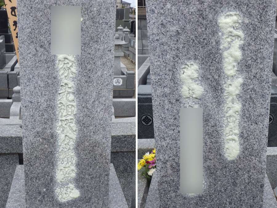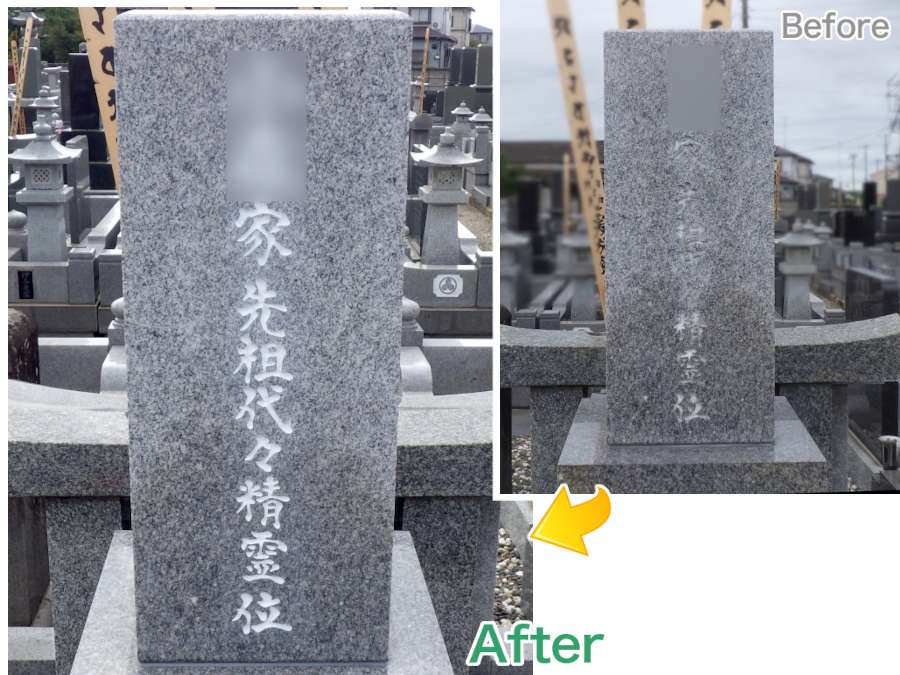 さいたま市思い出の里市営霊園にて、正面文字の彫り直し工事