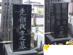 • お墓の正面文字を、家名から「先祖代々之墓」へ彫り直し。久喜市寺院墓地