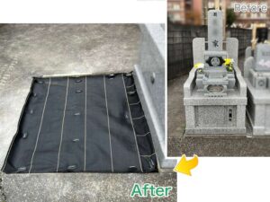 インド産M1Hとアーバングレーを使用した、曲線デザインの和型墓石を建立。久喜市寺院墓地