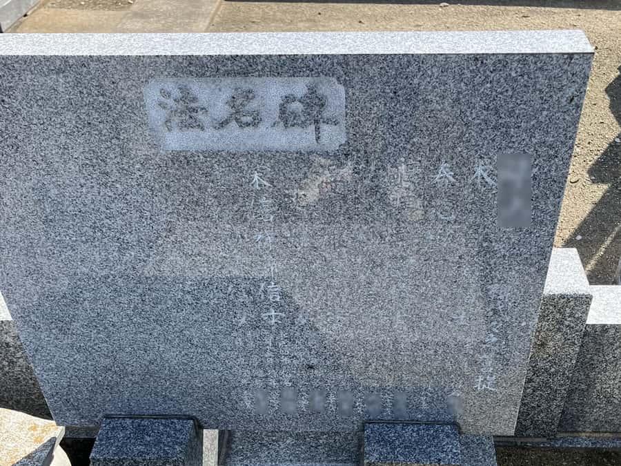 「お墓の戒名の色が落ちてしまって、文字が見えにくくなっている」「石塔の家名や家紋の色を入れ直したい」といったお考えの方、お気軽にご相談ください。